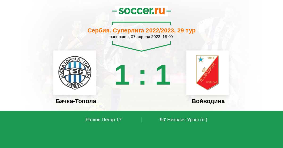 Сербия. Суперлига 28.05.2023 Бачка-Топола Логотип футбольный клуб Бачка-Топола 1:1 Логотип футбольный клуб Войводина (Нови Сад) Войводина