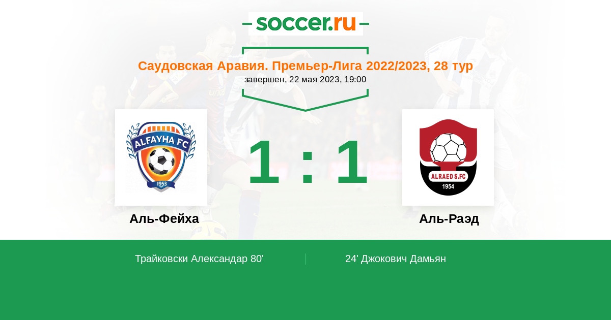 Саудовская Аравия. Премьер-Лига 14.01.2023 Аль-Раэд Логотип футбольный клуб Аль-Раэд (Бурайда) 2:4 Логотип футбольный клуб Аль-Фейха (Аль-Маджмаа) Аль-Фейха