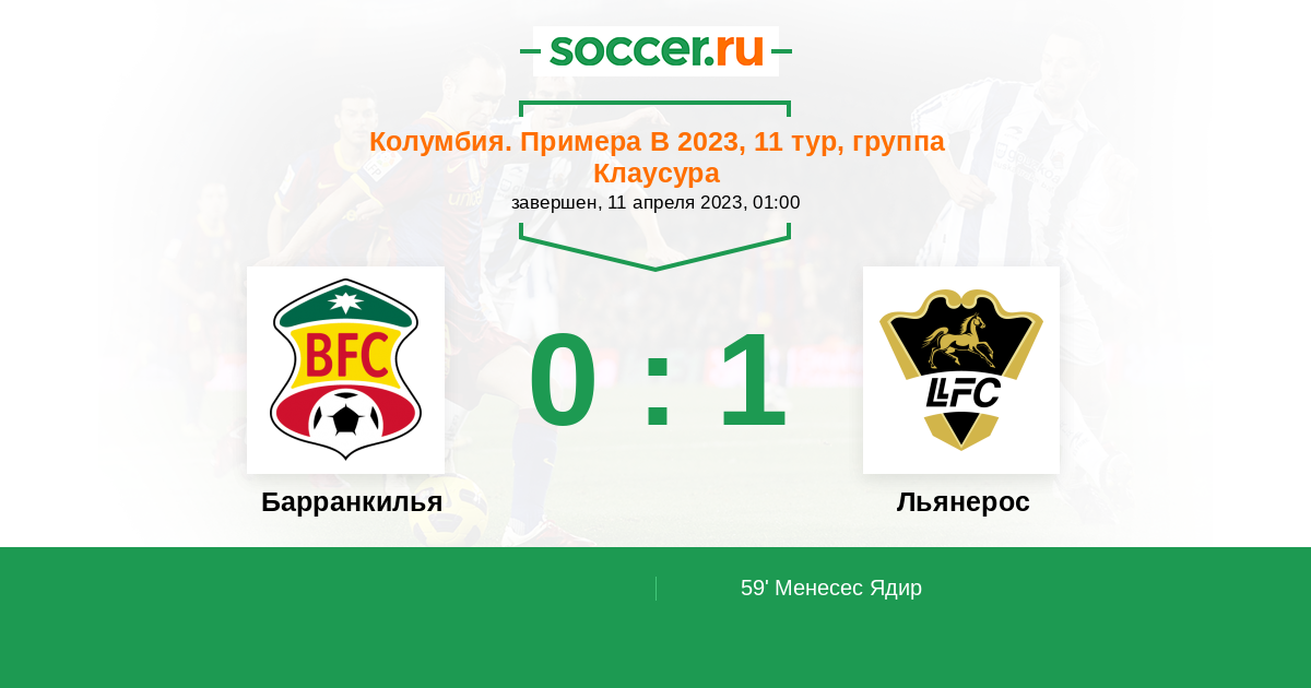 Колумбия. Примера B 30.04.2017 Льянерос Логотип футбольный клуб Льянерос (Вильявисенсио) 3:1 Логотип футбольный клуб Барранкилья Барранкилья