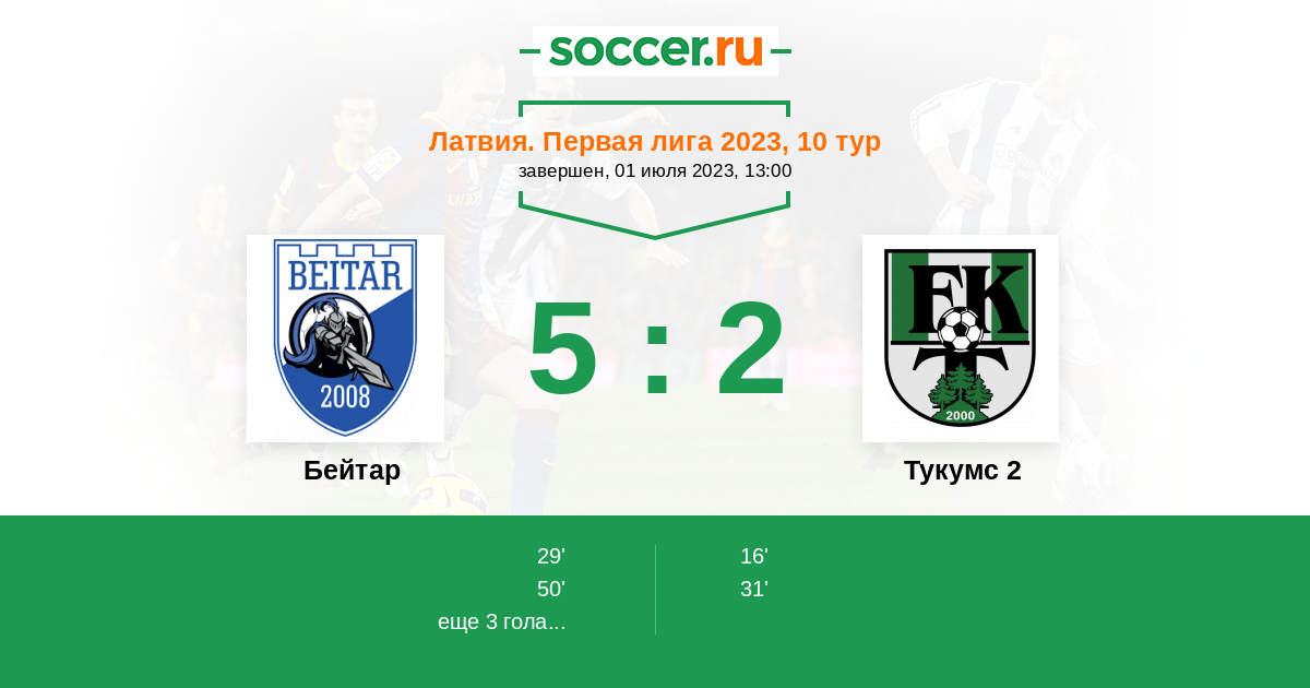 Тукумс 2 2:1 2:1 0:0