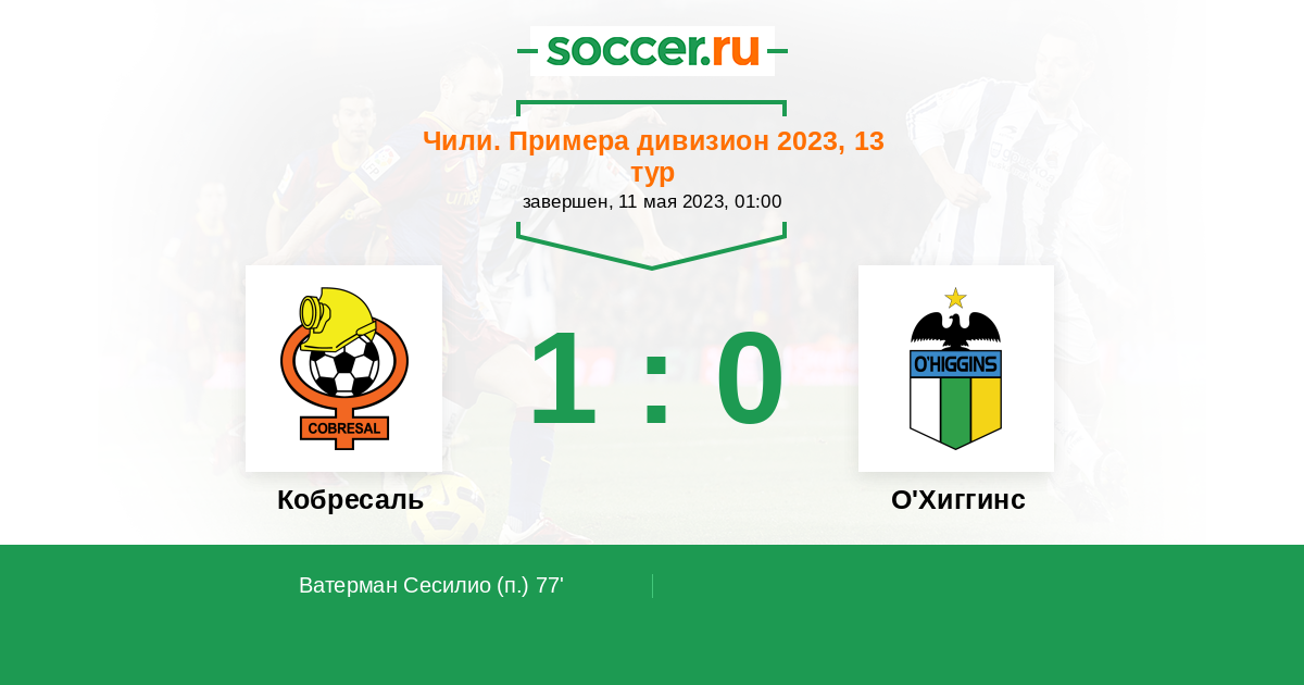 Чили. Примера дивизион 22.10.2022 О'Хиггинс Логотип футбольный клуб О'Хиггинс (Ранкагуа) 1:0 Логотип футбольный клуб Кобресаль (Эль-Сальвадор) Кобресаль