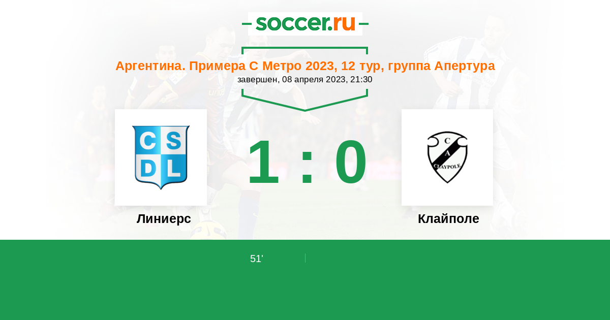 Аргентина. Примера С Метро 27.03.2022 Клайполе Логотип футбольный клуб Клайполе 2:1 Логотип футбольный клуб Линиерс (Ла-Матанса) Линиерс