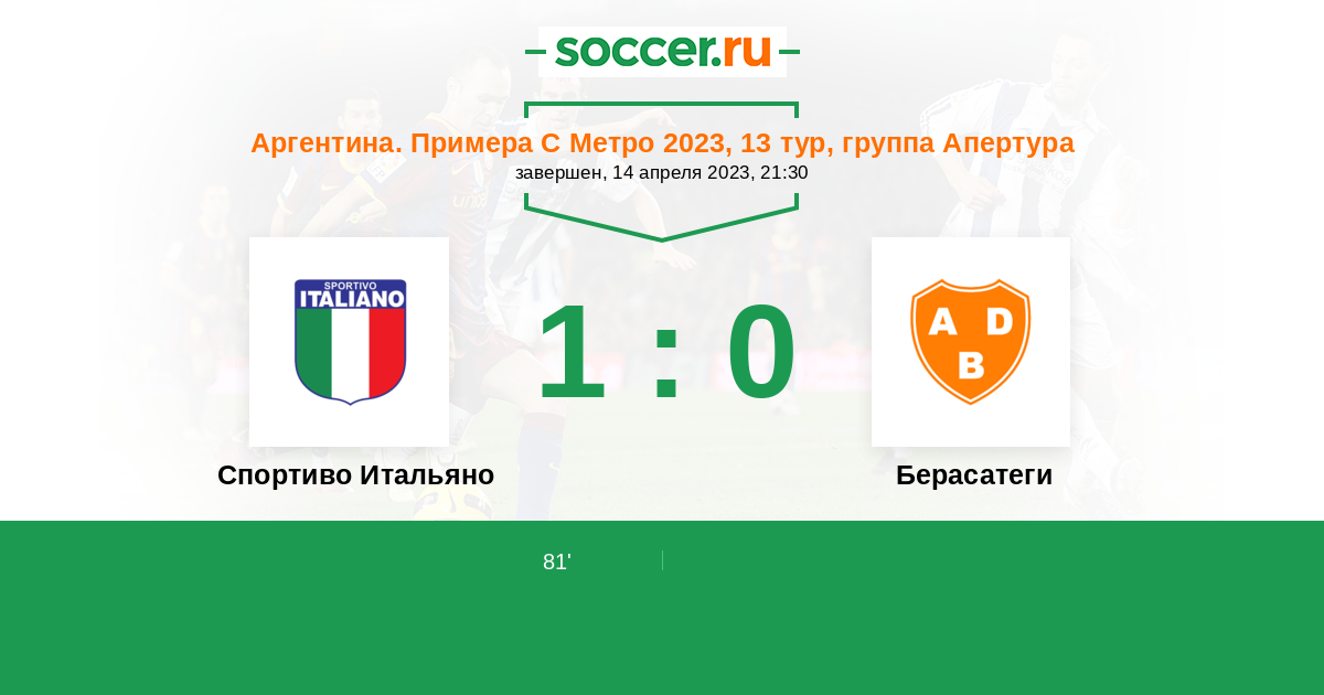 Аргентина. Примера С Метро 26.08.2023 Берасатеги Логотип футбольный клуб Берасатеги (Буэнос-Айрес) 0:1 Логотип футбольный клуб Спортиво Итальяно (Буэнос-Айрес) Спортиво Итальяно