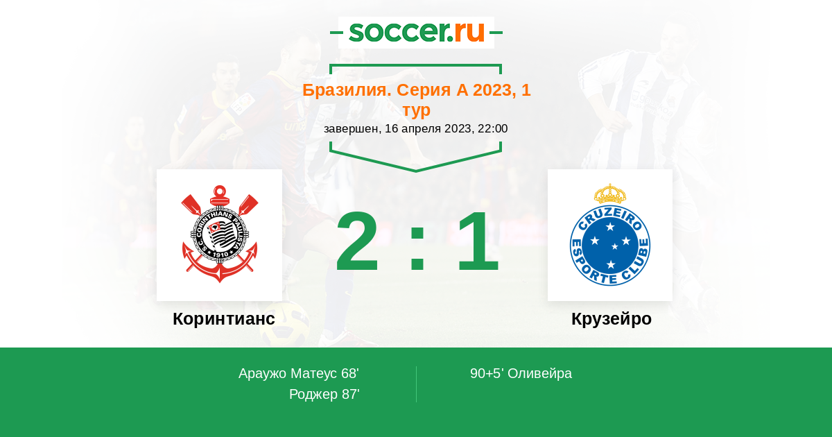Бразилия. Серия А 20.10.2019 Коринтианс Логотип футбольный клуб Коринтианс (Сан-Паулу) 1:2 Логотип футбольный клуб Крузейро (Белу-Оризонти) Крузейро