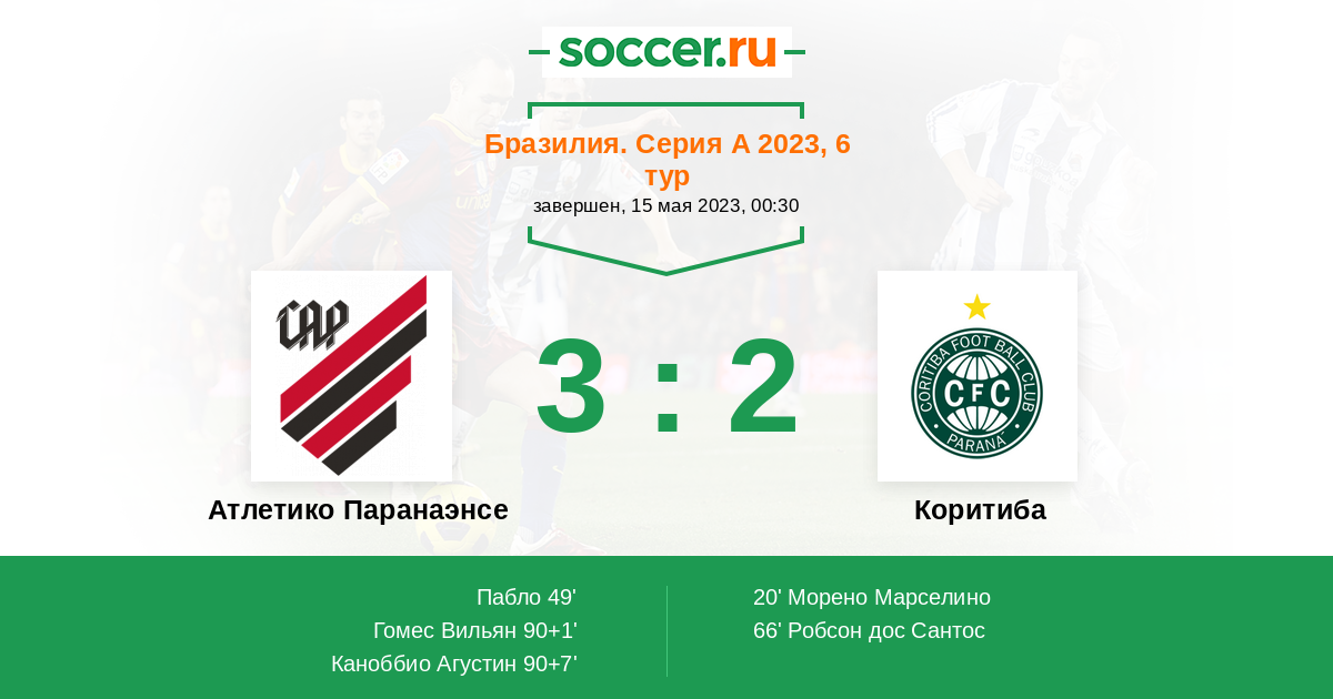 Бразилия. Серия А 01.10.2023 Коритиба Логотип футбольный клуб Коритиба 2:0 Логотип футбольный клуб Атлетико Паранаэнсе (Куритиба) Атлетико Паранаэнсе