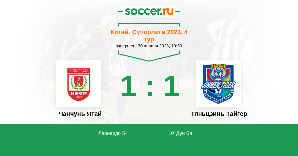 Китай. Суперлига 24.04.2011 Чанчунь Ятай Логотип футбольный клуб Чанчунь Ятай 3:3 Логотип футбольный клуб Тяньцзинь Тайгер Тяньцзинь Тайгер