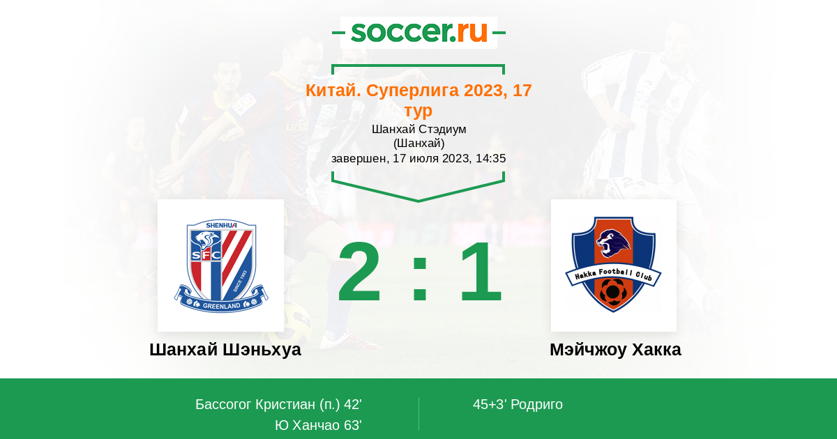 Шанхай Шэньхуа 17:2 10:1 7:1