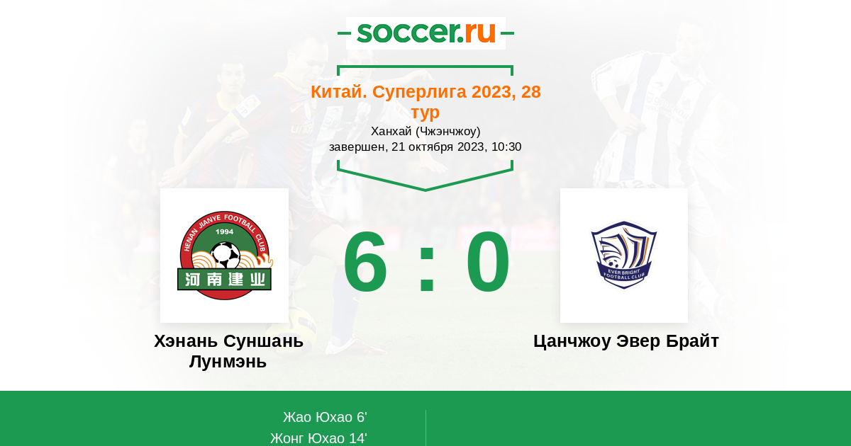 Китай. Суперлига 28.06.2023 Цанчжоу Эвер Брайт Логотип футбольный клуб Цанчжоу Эвер Брайт 0:1 Логотип футбольный клуб Хэнань Суншань Лунмэнь (Чжэнчжоу) Хэнань Суншань Лунмэнь