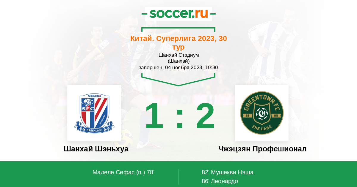 Китай. Суперлига 05.12.2022 Шанхай Шэньхуа Логотип футбольный клуб Шанхай Шэньхуа 0:2 Логотип футбольный клуб Чжэцзян Профешионал (Ханчжоу) Чжэцзян Профешионал