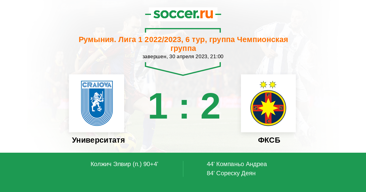 Румыния. Лига 1 03.04.2022 ФКСБ Логотип футбольный клуб ФКСБ (Бухарест) 0:2 Логотип футбольный клуб Университатя Крайова Университатя Крайова