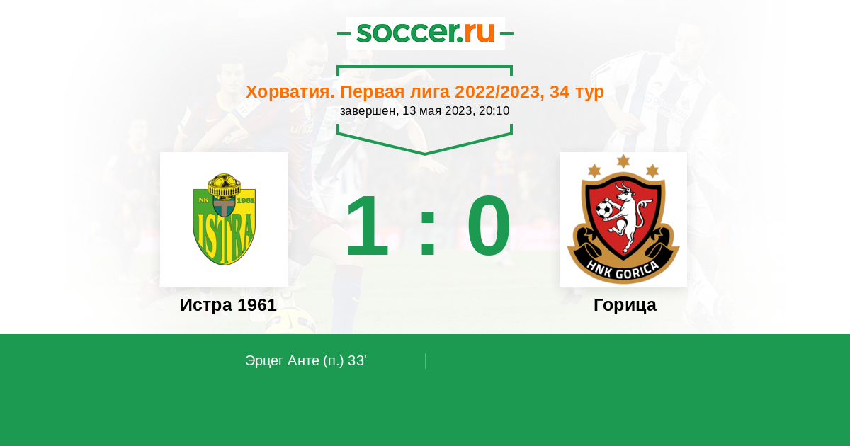 Хорватия. Первая лига 10.03.2023 Горица Логотип футбольный клуб Горица (Велика Горица) 5:4 Логотип футбольный клуб Истра 1961 (Пула) Истра 1961