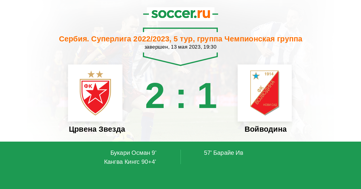 Сербия. Суперлига 30.07.2023 Црвена Звезда Логотип футбольный клуб Црвена Звезда (Белград) 5:0 Логотип футбольный клуб Войводина (Нови Сад) Войводина