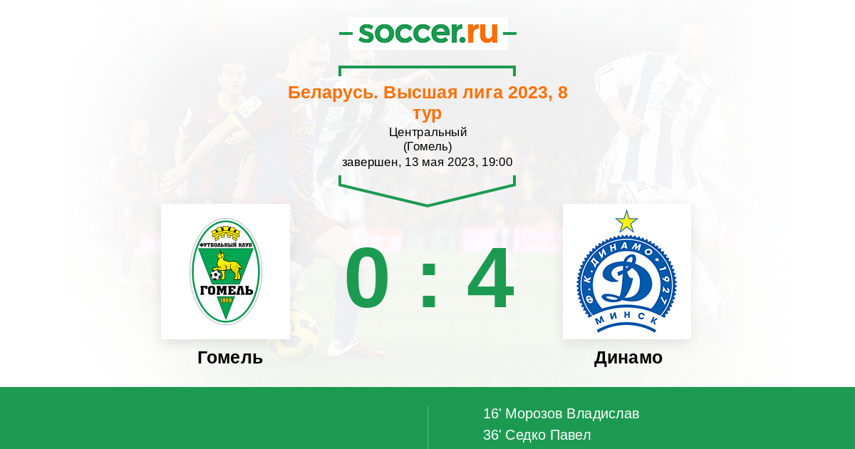 Беларусь. Высшая лига 08.05.2022 Гомель Логотип футбольный клуб Гомель 0:1 Логотип футбольный клуб Динамо (Минск) Динамо