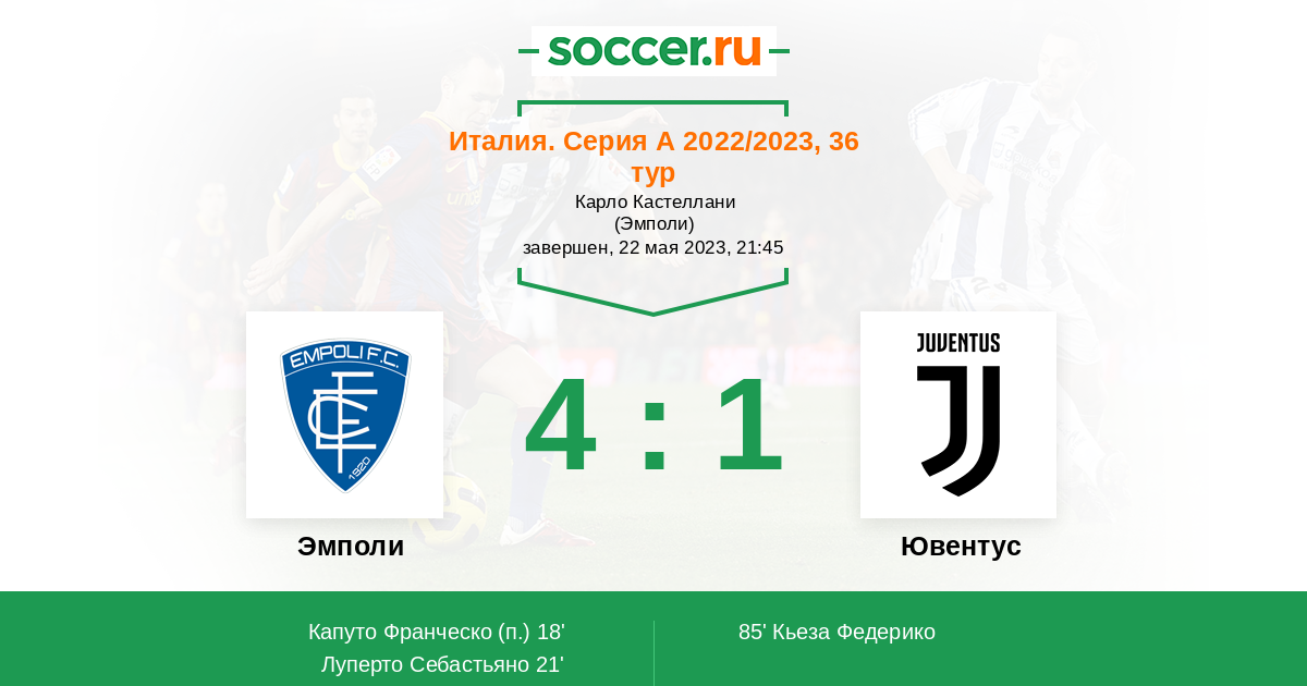 Италия. Серия А 26.02.2022 Эмполи Логотип футбольный клуб Эмполи 2:3 Логотип футбольный клуб Ювентус (Турин) Ювентус