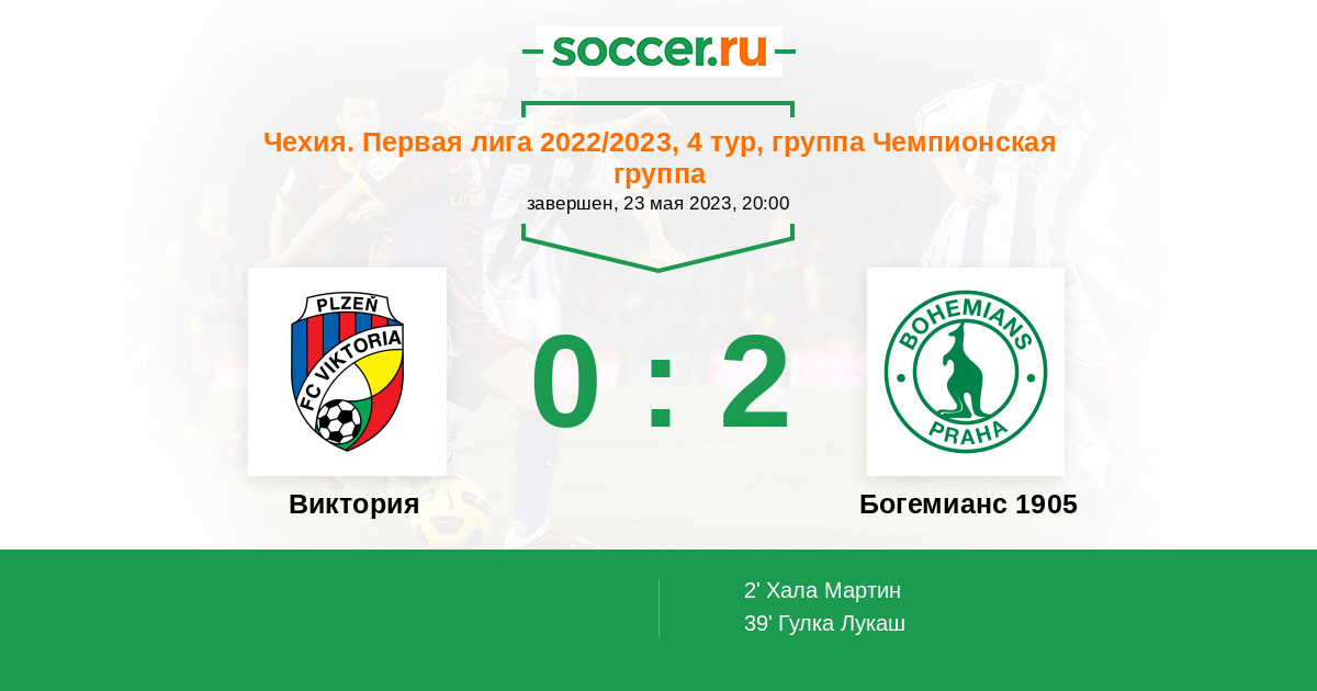 Чехия. Первая Лига 03.09.2023 Виктория Логотип футбольный клуб Виктория (Пльзень) 2:0 Логотип футбольный клуб Богемианс 1905 (Прага) Богемианс 1905
