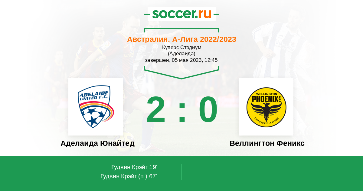 Австралия. А-Лига 17.03.2023 Аделаида Юнайтед Логотип футбольный клуб Аделаида Юнайтед 5:1 Логотип футбольный клуб Веллингтон Феникс Веллингтон Феникс