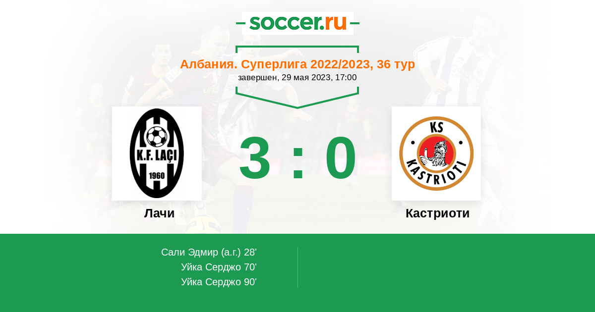 Албания. Суперлига 25.01.2023 Лачи Логотип футбольный клуб Лачи 4:1 Логотип футбольный клуб Кастриоти (Круже) Кастриоти