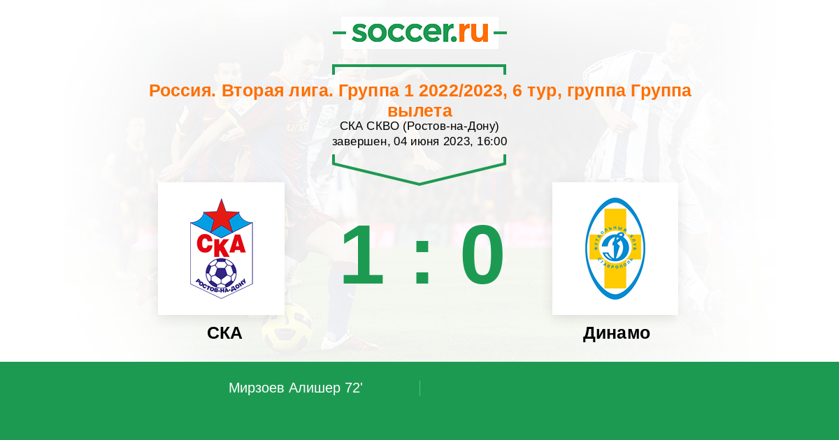 Россия. Вторая лига. Дивизион «Б». Группа 1 27.08.2023 СКА Логотип футбольный клуб СКА (Ростов-на-Дону) 0:2 Логотип футбольный клуб Динамо Ставрополь Динамо Ставрополь
