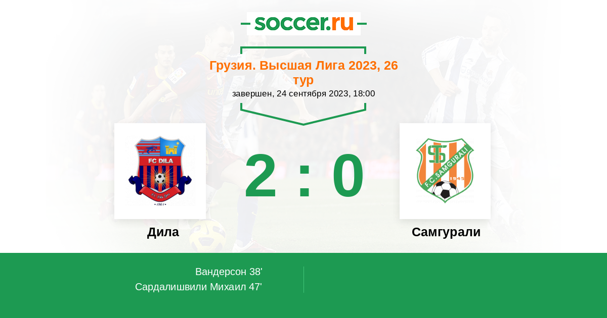 Грузия. Высшая лига 20.06.2022 Дила Логотип футбольный клуб Дила (Гори) 1:0 Логотип футбольный клуб Самгурали (Цхалтубо) Самгурали