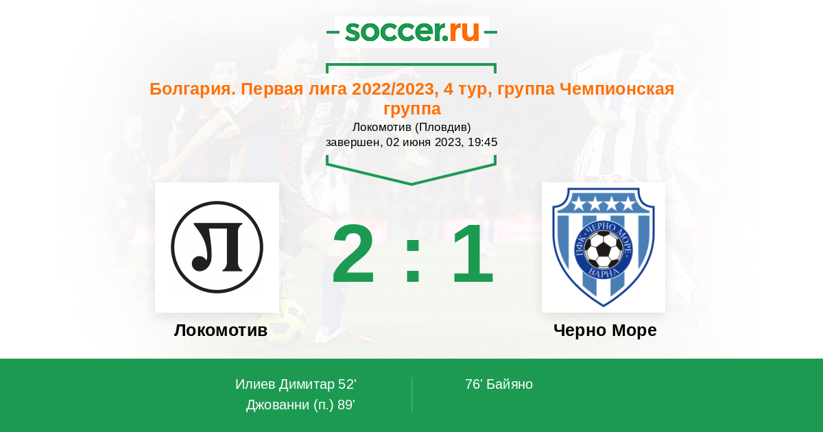 Болгария. Первая лига 17.09.2022 Локомотив Логотип футбольный клуб Локомотив (Пловдив) 3:0 Логотип футбольный клуб Черно Море (Варна) Черно Море