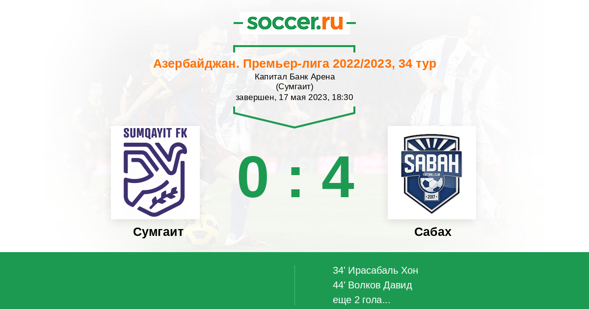 Азербайджан. Премьер-Лига 18.05.2024 Сабах Логотип футбольный клуб Сабах (Баку) 2:0 Логотип футбольный клуб Сумгаит Сумгаит