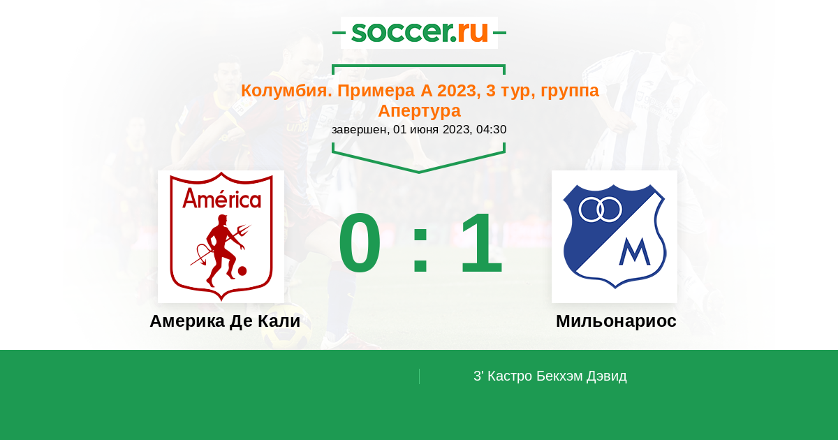 Колумбия. Примера А 04.06.2023 Мильонариос Логотип футбольный клуб Мильонариос (Богота) 2:1 Логотип футбольный клуб Америка Де Кали Америка Де Кали