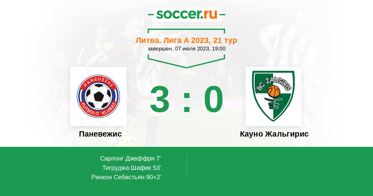 Литва. Лига А 20.07.2024 Паневежис Логотип футбольный клуб Паневежис 1:2 Логотип футбольный клуб Кауно Жальгирис (Каунас) Кауно Жальгирис