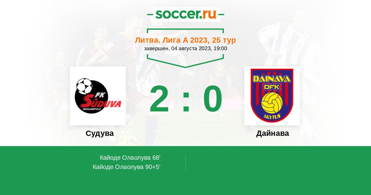 Литва. Лига А 12.08.2012 Судува Логотип футбольный клуб Судува (Мариямполе) 3:2 Логотип футбольный клуб Дайнава (Алитус) Дайнава