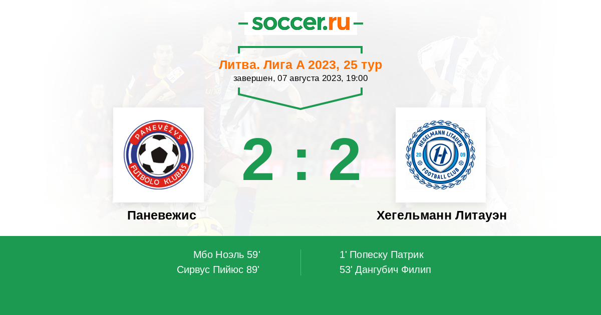 Литва. Лига А 03.06.2023 Паневежис Логотип футбольный клуб Паневежис 1:0 Логотип футбольный клуб Хегельманн Литауэн (Каунас) Хегельманн Литауэн