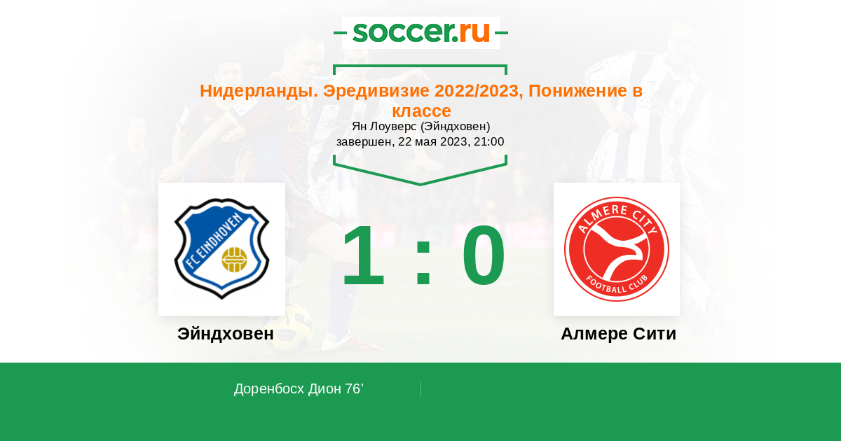 Нидерланды. Эредивизи 26.05.2023 Алмере Сити Логотип футбольный клуб Алмере Сити 3:1 Логотип футбольный клуб Эйндховен Эйндховен
