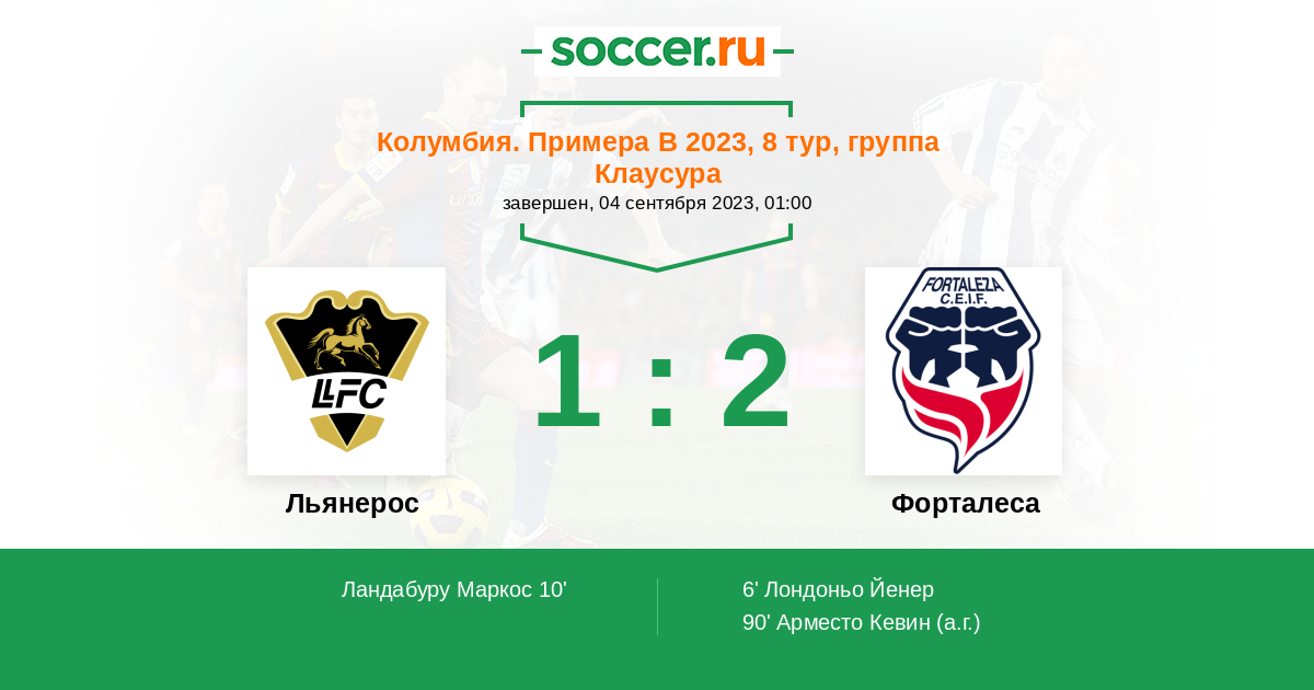 Колумбия. Примера B 19.04.2017 Льянерос Логотип футбольный клуб Льянерос (Вильявисенсио) 2:0 Логотип футбольный клуб Форталеса (Богота) Форталеса