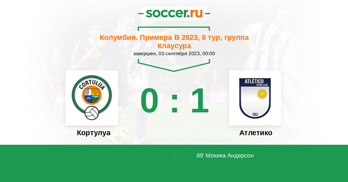 Колумбия. Примера B 29.07.2018 Кортулуа Логотип футбольный клуб Кортулуа 1:1 Логотип футбольный клуб Атлетико Кали Атлетико Кали