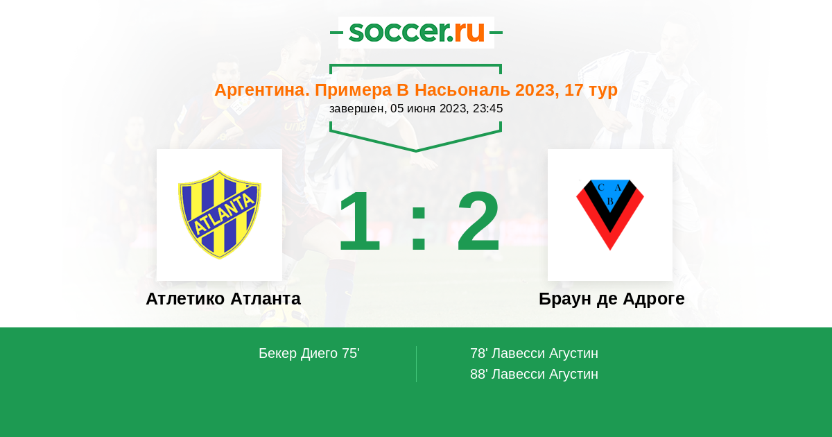 Атлетико Атланта 7:5 1:0 6:5