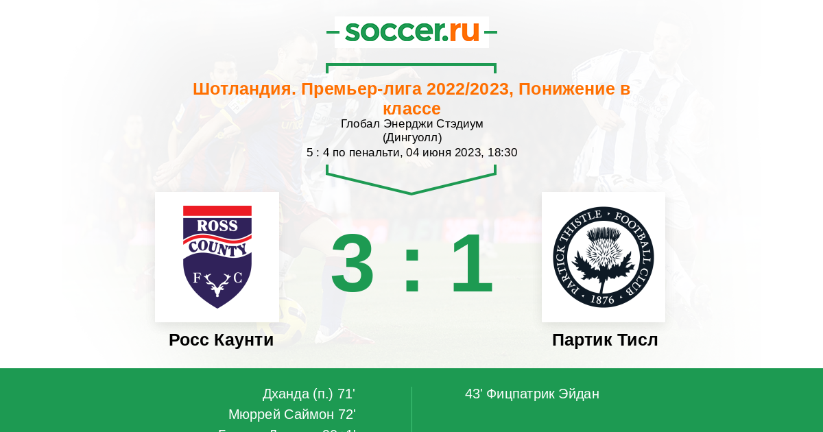Шотландия. Премьер-Лига 01.06.2023 Партик Тисл Логотип футбольный клуб Партик Тисл (Глазго) 2:0 Логотип футбольный клуб Росс Каунти (Дингволл) Росс Каунти
