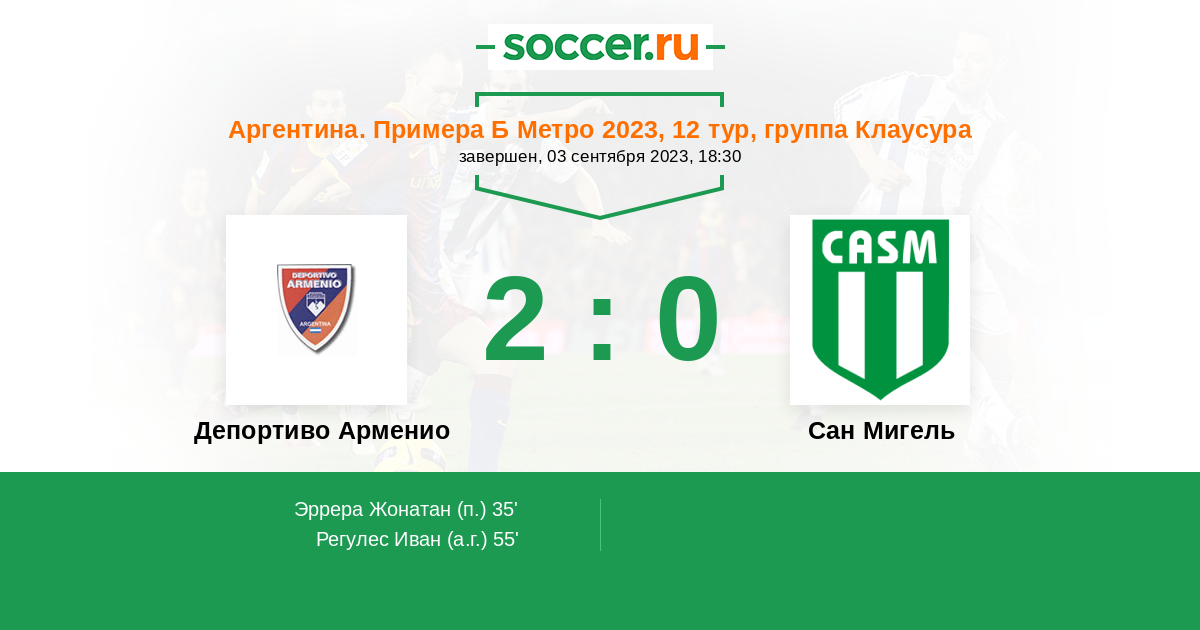Аргентина. Примера С Метро 2 1 0 1