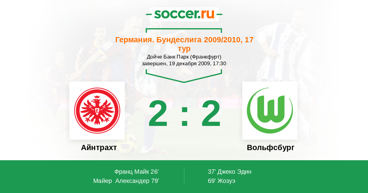 Германия. Бундеслига 14.02.2009 Айнтрахт Логотип футбольный клуб Айнтрахт (Франкфурт) 0:2 Логотип футбольный клуб Вольфсбург Вольфсбург