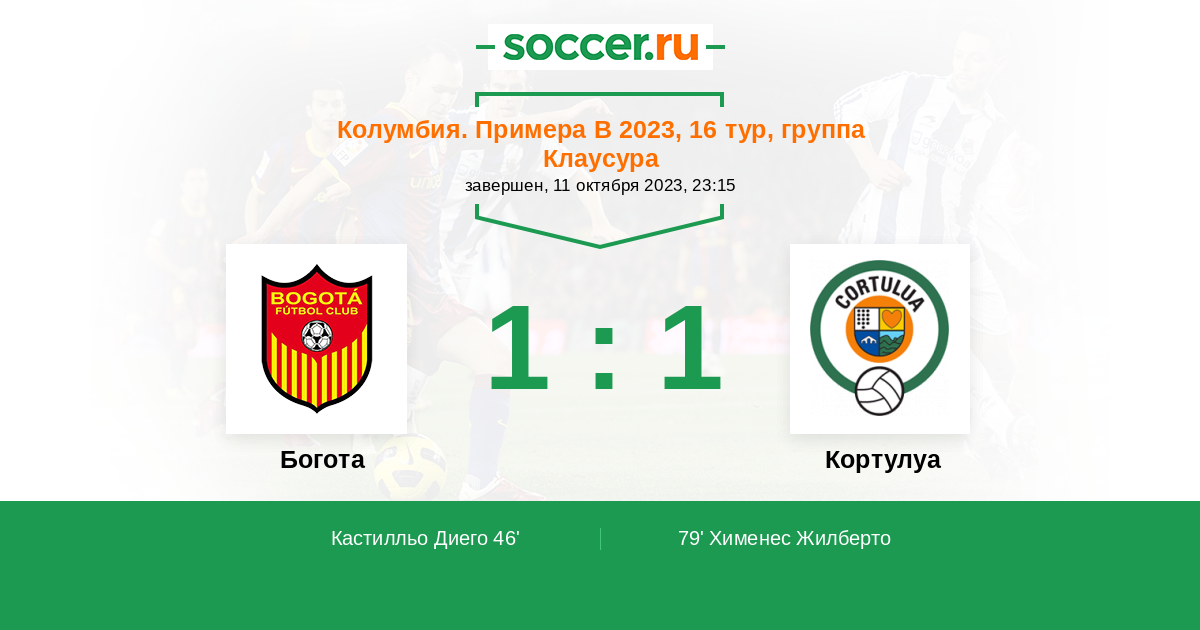 Колумбия. Примера B 23.09.2012 Кортулуа Логотип футбольный клуб Кортулуа 3:1 Логотип футбольный клуб Богота Богота