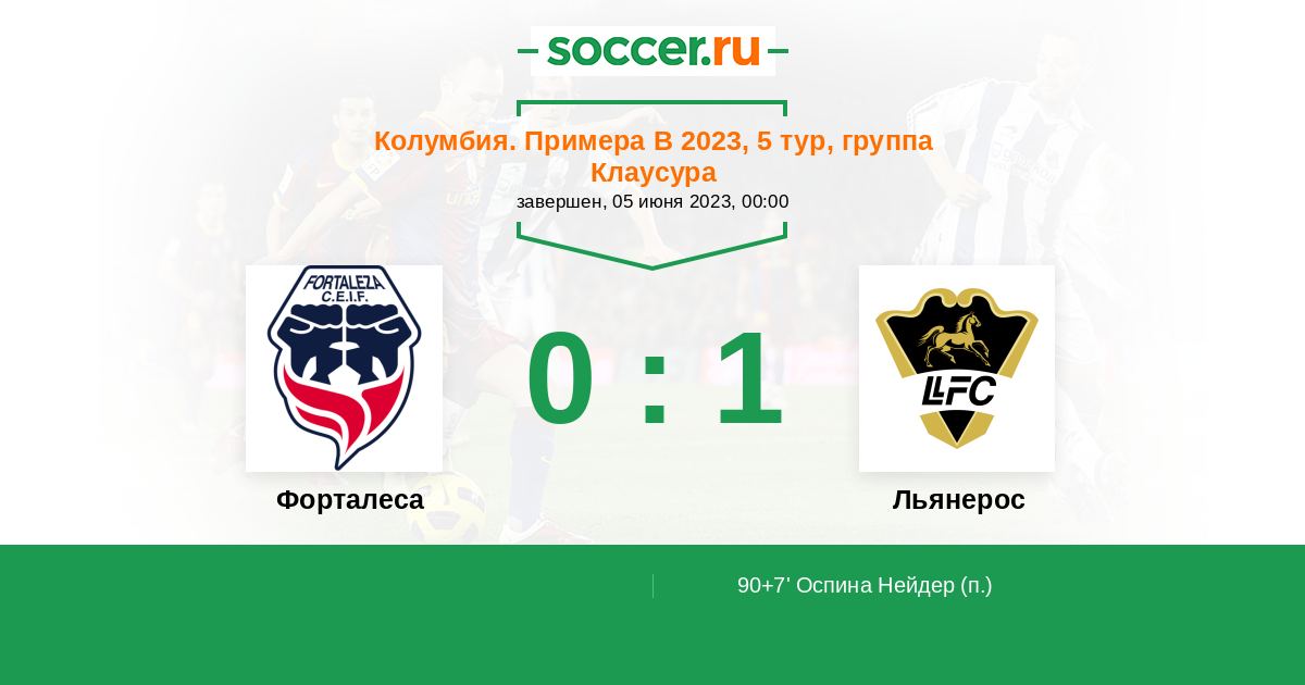 Колумбия. Примера B 25.05.2023 Льянерос Логотип футбольный клуб Льянерос (Вильявисенсио) 2:1 Логотип футбольный клуб Форталеса (Богота) Форталеса