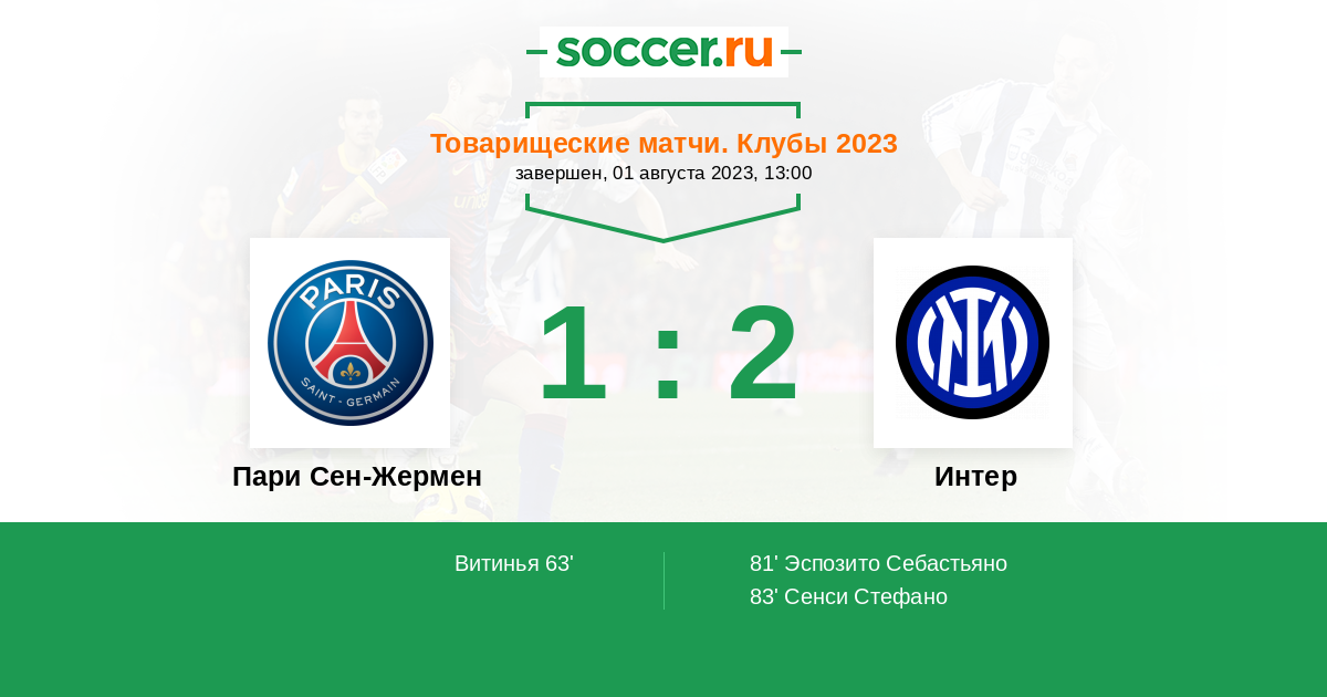 Интер 2:10 1:3 1:7