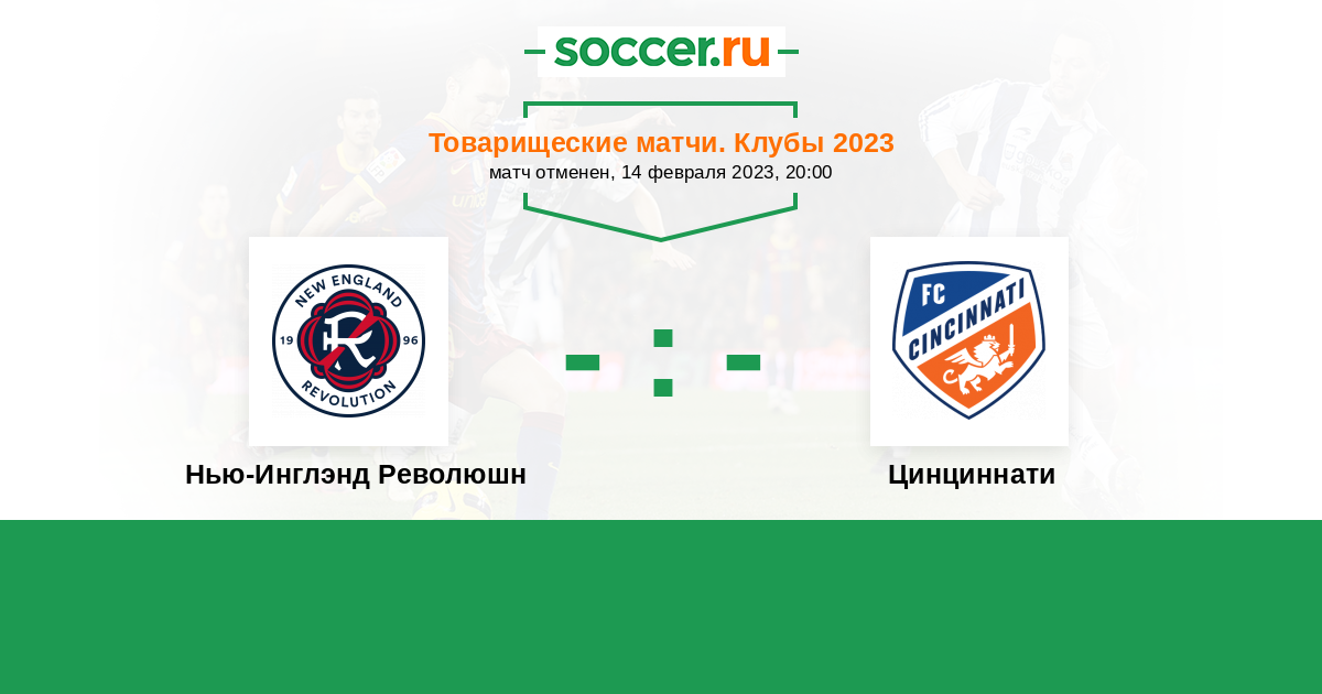 Товарищеские матчи. Клубы 15.02.2024 Цинциннати Логотип футбольный клуб Цинциннати 5:2 Логотип футбольный клуб Нью-Инглэнд Революшн (Фоксборо) Нью-Инглэнд Революшн