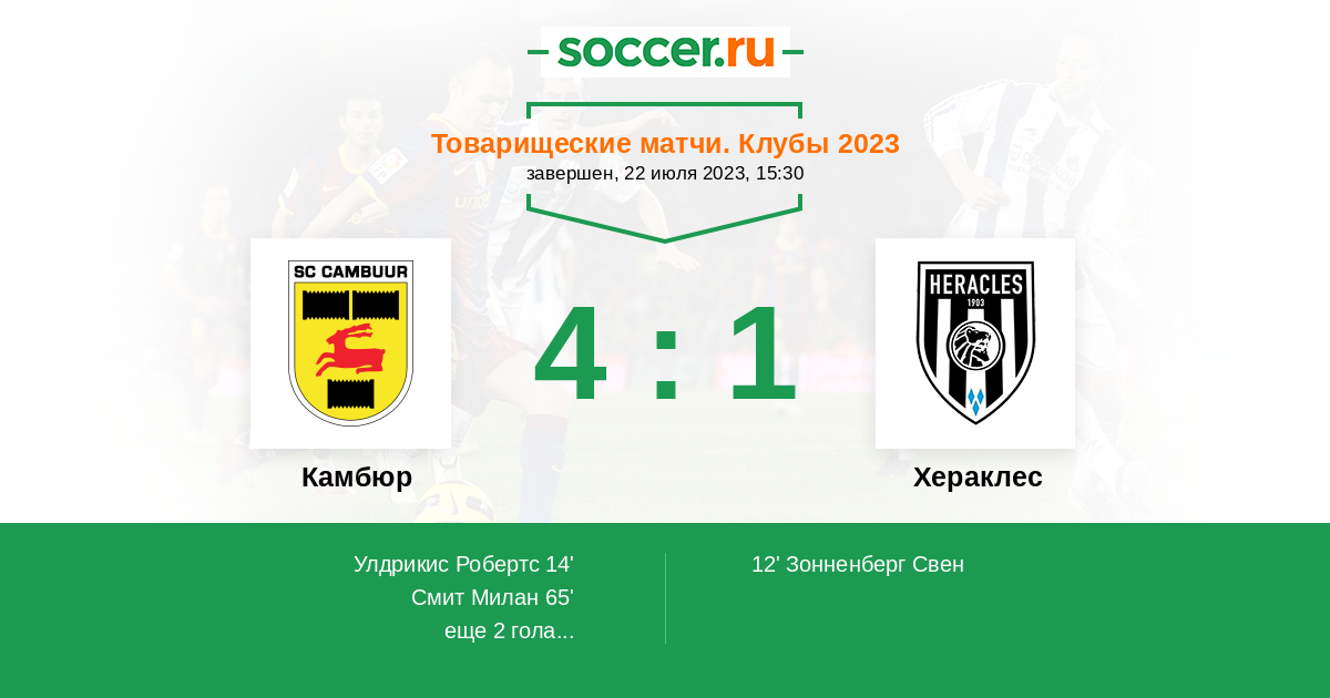 Нидерланды. Кубок 16.12.2014 Хераклес Логотип футбольный клуб Хераклес (Алмело) 0:3 Логотип футбольный клуб Камбюр (Лиуварден) Камбюр