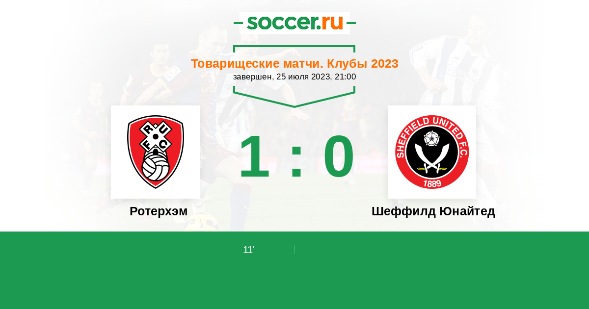 Товарищеские матчи. Клубы 27.07.2024 Ротерхэм Логотип футбольный клуб Ротерхэм (Шеффилд) 1:2 Логотип футбольный клуб Шеффилд Юнайтед Шеффилд Юнайтед