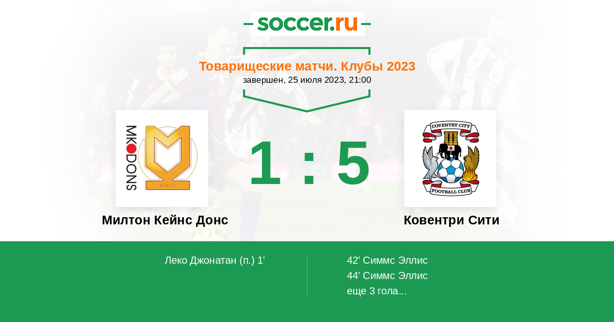 Англия. Первая Футбольная Лига 23.08.2014 Милтон Кейнс Донс Логотип футбольный клуб Милтон Кейнс Донс 0:0 Логотип футбольный клуб Ковентри Сити Ковентри Сити