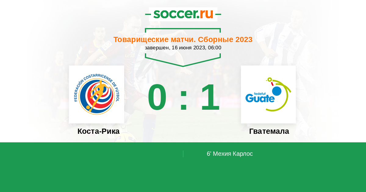 Товарищеские матчи. Сборные 23.03.2019 Гватемала Логотип Гватемала 1:0 Логотип Коста-Рика Коста-Рика
