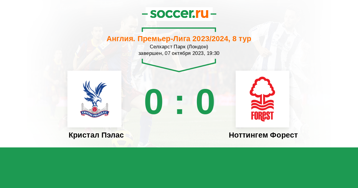 Англия. Премьер-Лига 21.10.2024 Ноттингем Форест Логотип футбольный клуб Ноттингем Форест 1:0 Логотип футбольный клуб Кристал Пэлас (Лондон) Кристал Пэлас