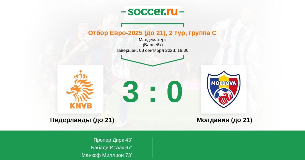 Нидерланды (до 21) Молдавия (до 21)