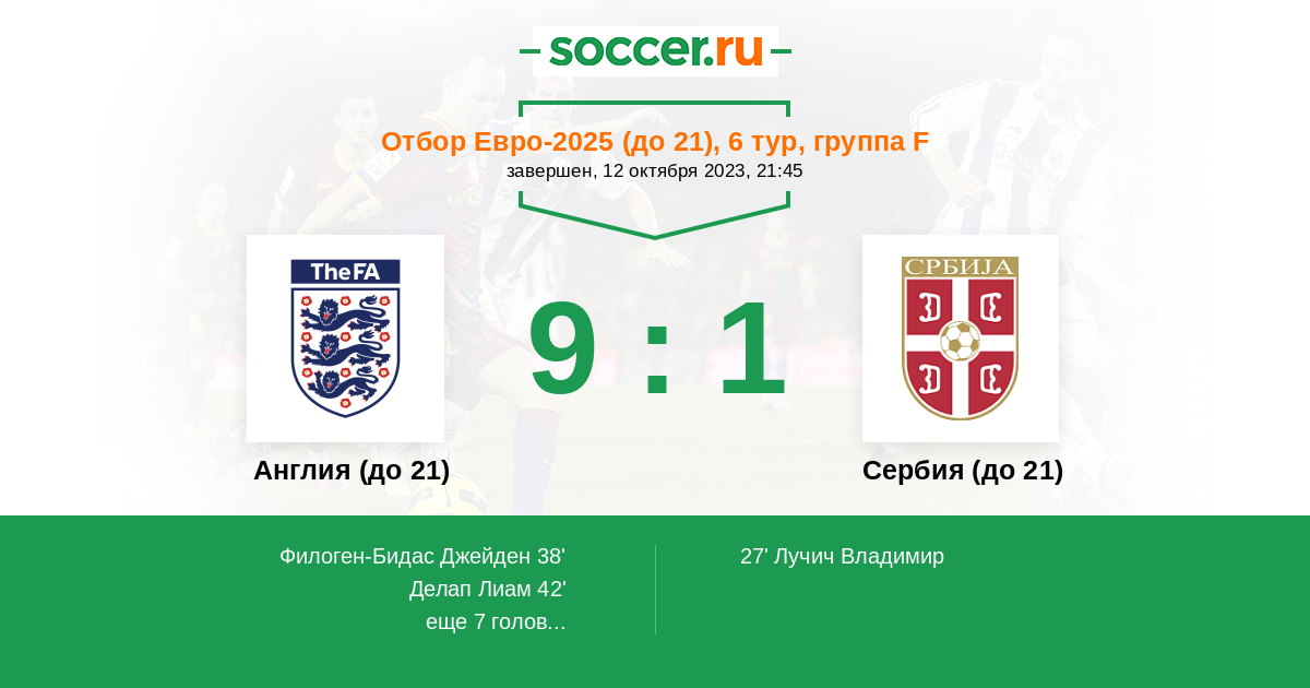 Англия (до 21) 3:0 0:0 3:0