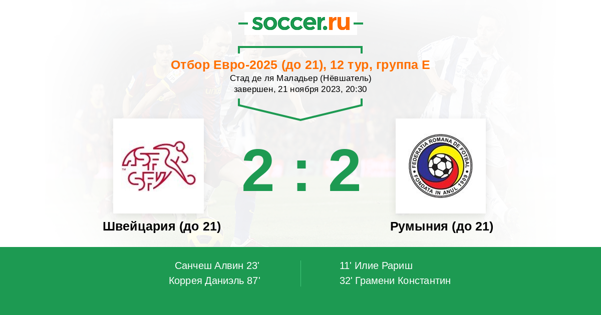Швейцария (до 21) Румыния (до 21)