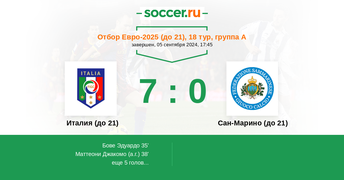 Италия (до 21) 7:0 0:0 7:0
