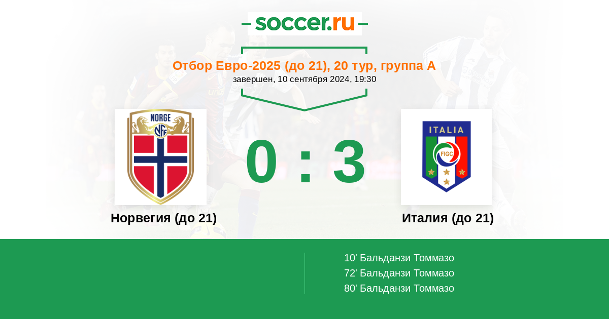 Норвегия (до 21) Италия (до 21)